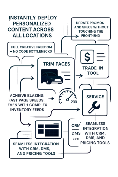Launch new models, promotions, or service specials across all sites instantly, no developer needed.